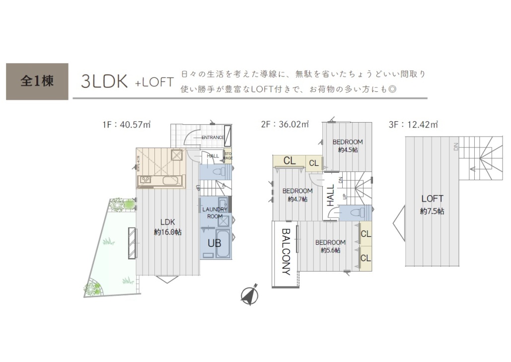 建物面積 | 76.59㎡ | 間取 | 3LDK |