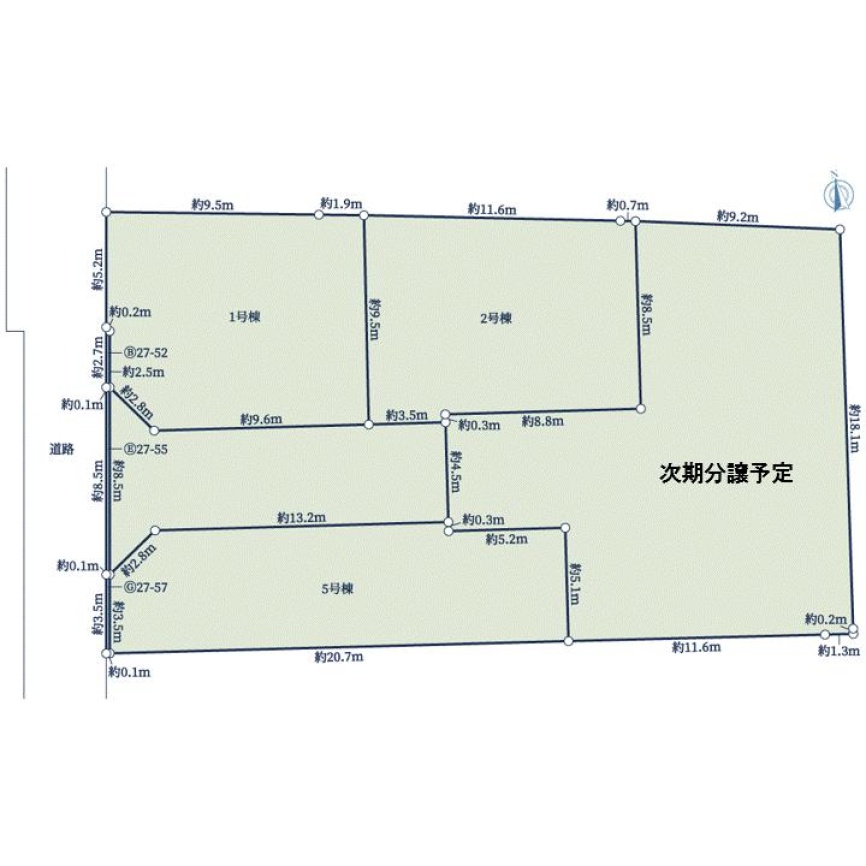 | 販売棟数 | 全5棟 今回販売3棟 | 土地面積 | 110.13㎡〜111.31㎡ |