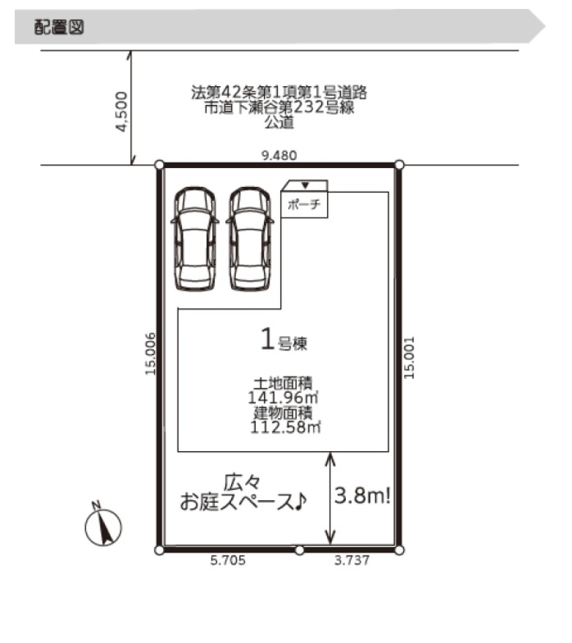 | 販売棟数 | 全1棟 今回販売1棟 | 土地面積 | 141.96㎡ |