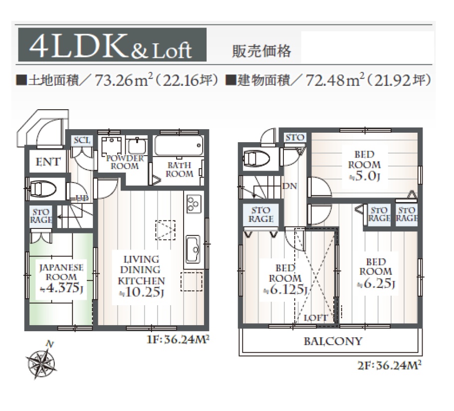 | 土地面積 | 73.26㎡ | 建物面積 | 72.48㎡ |
